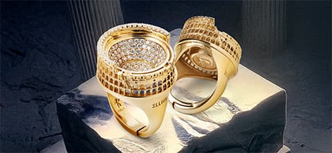 The men’s and women’s rings and necklaces in this collection embody the essence of the Colosseum: a majestic structure of strength and beauty, a symbol of a past that continues to inspire. Architectural details recall the imposing arches of the amphitheater, while aged silver textures evoke the charm of ancient stones. The rhodium finish adds a touch of sophisticated modernity, while the gold finish gives elegance and warmth, perfect for those seeking a refined detail.